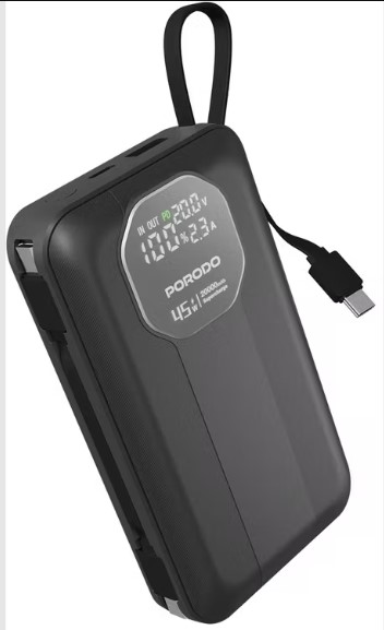 Porodo 20000 mAh Power Bank PD‑PBFCH081 – Dual Built-in Detachable & Retractable Type‑C Cables, 45 W USB‑C PD + 22.5 W USB‑A Output (Price In Oman)