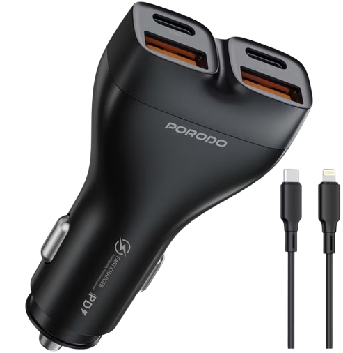 Porodo Dual Power 102 W Car Charger (USB-C + Lightning Cable) PDFWCH085 – Fast PD Charging for iPhone & USB-C Devices – Price in Oman