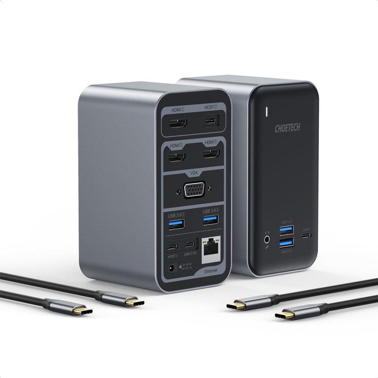 Choetech HUB-M21 15-in-1 USB-C Multiport Docking Station – Expand Your Connectivity with Triple 4K HDMI, VGA, USB 3.0, Ethernet,