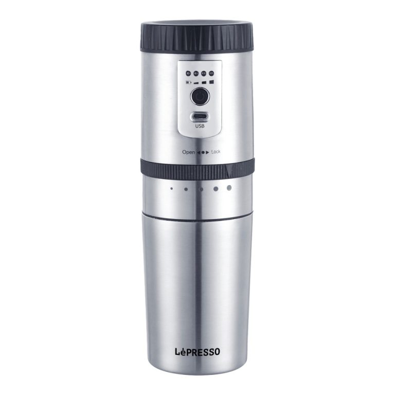 LePresso Portable Mug Burr Grinder Coffee Maker (LPGCMSM) – 250ml Travel Mug with Adjustable Grind & Type-C Charging,