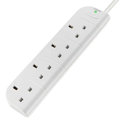 Belkin 4‑Socket UK Surge Protector Extension – 1 m Cable, 238 J Protection, Recessed Switch