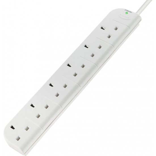 Belkin 6‑Socket UK Surge Protector Extension – 1 m Cable, 1080 J Surge Shield & Rotating Plug