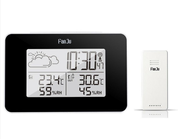 Fanju Wireless Weather Station with Indoor/Outdoor Temperature & Humidity Monitor, Alarm Clock, and LCD Display –