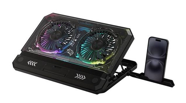 Porodo PDX117 Aluminum Laptop Cooling Pad with RGB Lighting – 5 Fans, 1500 RPM, 3 Adjustable Angles