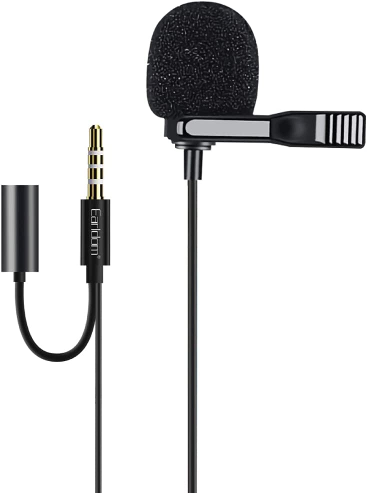 Earldom ET‑E38 Mini Lavalier Mic 3.5 mm with Clip – 2 m Cable, Hyper‑Cardioid Condenser –