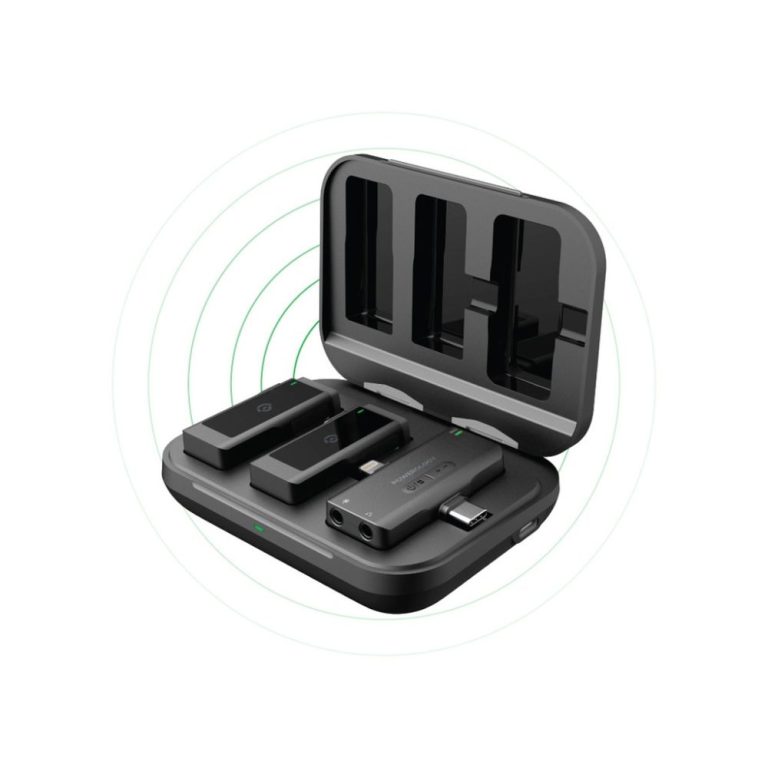 Powerology Wireless Lavalier Microphone Duo – Lightning & Type-C Connectors, Noise-Cancelling Clip-On Mic (PWMIC2)