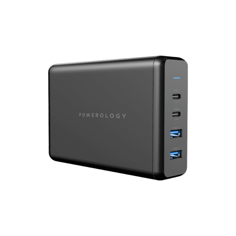 Powerology 4-Port Quick Charge Power Terminal PD 156W – Fast Charging Station with 2 USB-C & 2 USB-A Ports –