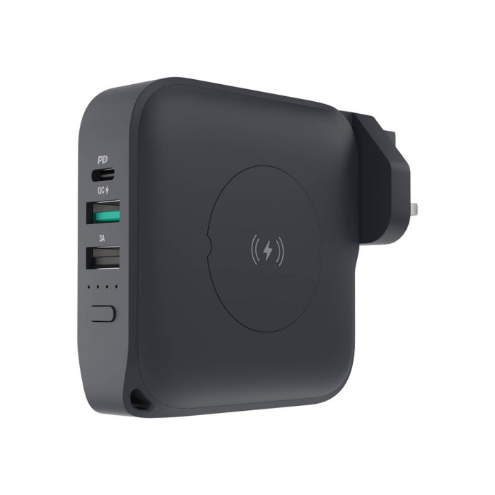 Porodo Suction Power Bank 10000mAh PD-PBFCH012-BK – 18W Type-C PD, 10W Wireless Charging, QC 3.0,