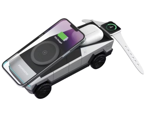 Porodo Cyber Dock Wireless Charger + 360° Rotating Stand PDMRCTWCGY – Fast Qi Charging for Phones, Smartwatches & Earbuds