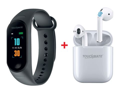 9.90 ر.ع.TouchMate TM-SW100BT Waterproof Fitness Band with Wireless Earbuds – Heart Rate, Sleep & Blood Pressure Monitor, Bluetooth 5.0,