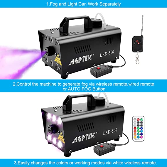 AGPTEK 500W Fog Machine with 13 Colorful LED Lights and Wireless Remote Control – Portable Smoke Machine for Parties, Weddings, DJ Events,