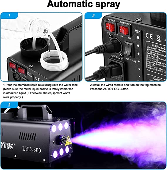Elevate your events with the AGPTEK fog machine, a powerful and portable solution designed to create captivating atmospheres. With a 500W motor, this fog machine produces an impressive 2000CFM output, filling spaces with dense, non-toxic fog within a 2-3 meter range.