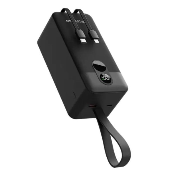 Porodo 50000mAh Power Bank with Integrated Cables (PBFCH061) – Fast Charging, USB-C & Lightning Outputs, Digital Display