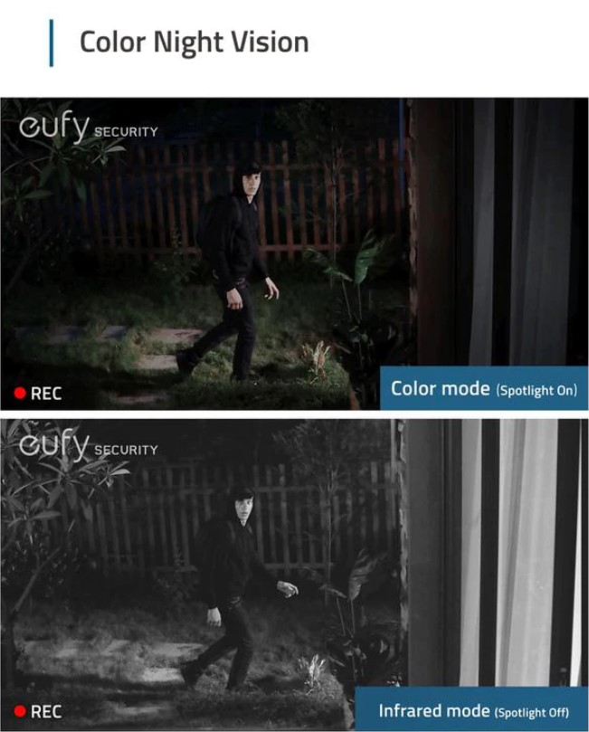Night Vision: Infrared and spotlight-enabled