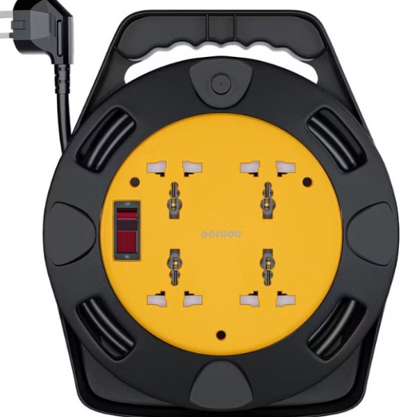 Porodo 4-Port Universal AC Socket Extension Reel with 10M Cable – Heavy-Duty Power Strip (PD-4ACE10M)