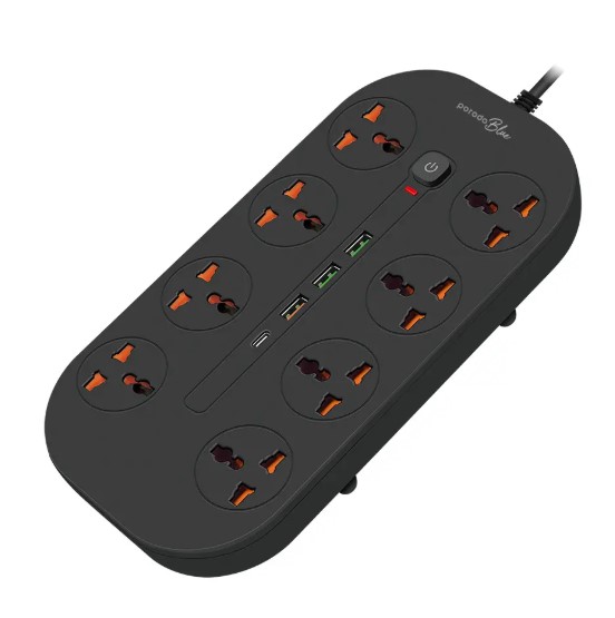 Porodo Blue 8AC Universal Power Strip FWCH035 – 3000W, 3m Cable, USB-C & USB-A Ports,