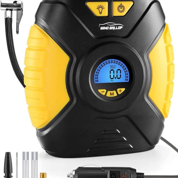 WindGallop 12V Portable Digital Tire Inflator – 150 PSI Air Compressor with Auto Shut-Off & LED Light –