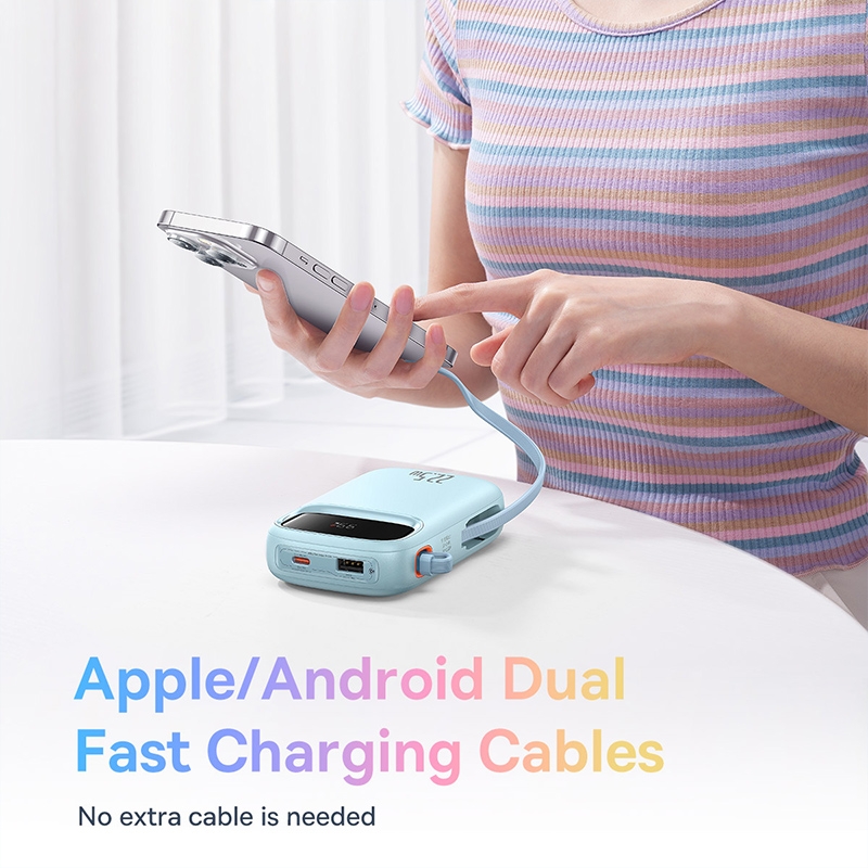 Baseus Qpow2 10000mAh 22.5W Dual-Cable Fast Charging Power Bank with Digital Display,