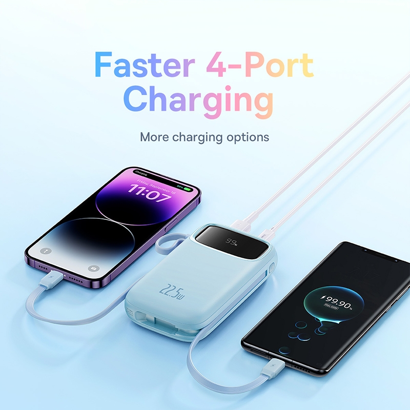 With a substantial 10000mAh capacity, it ensures your devices remain charged throughout the day. The 22.5W fast charging capability delivers quick power boosts, reducing downtime. The smart digital display provides real-time battery status, so you’re always informed.