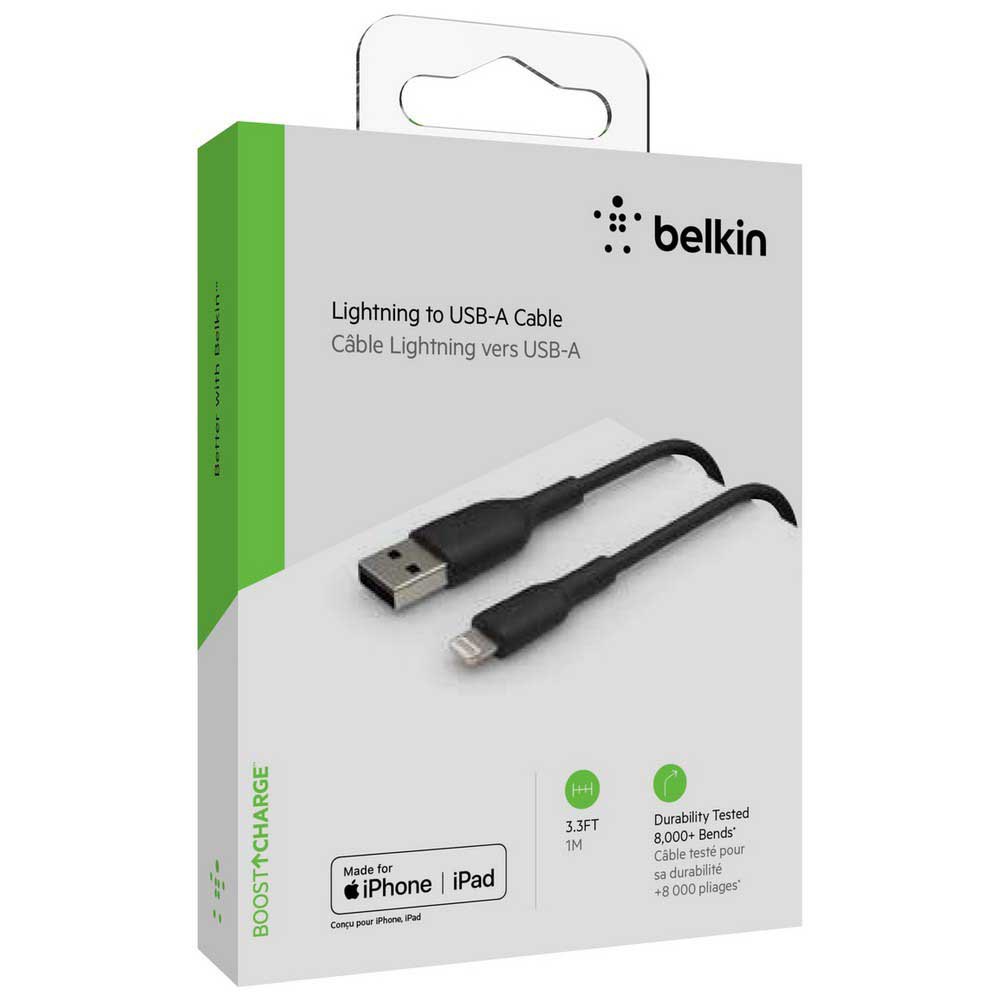 Experience reliable charging with the Belkin BoostCharge Lightning to USB‑A Cable (1 m, Black) — a premium belkin lightning usb‑a cable Oman designed for durability and compatibility. With MFi certification, it ensures safe charging and seamless sync for iPhones, iPads, and AirPods — no errors, no interruptions. The cable’s enhanced braided nylon exterior withstands over 10,000 bends, offering flexibility and long life—perfect for daily use at home, office, or in your car.