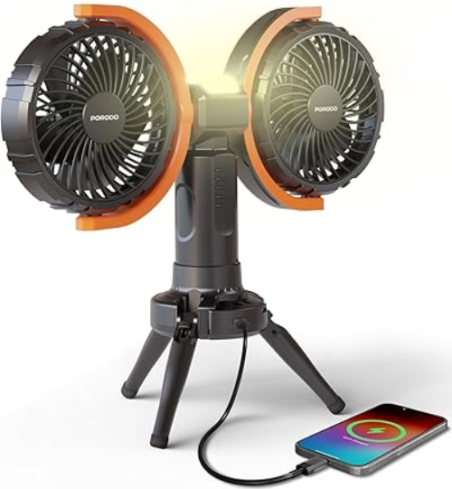 Porodo Dual Head Fan with Tripod Base, LED Light & Power Bank PD-LFST150 – Portable Rechargeable Cooling Fan – Price in Oman