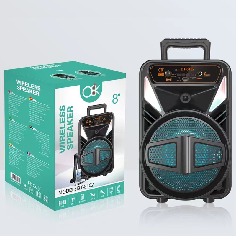 BT‑8101 8″ Portable Bluetooth Speaker with Mic & Remote – 15 W Karaoke Speaker, LED RGB Lights