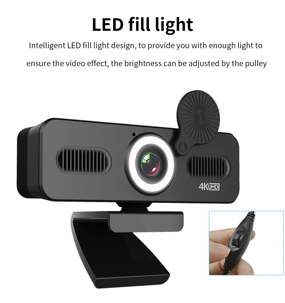 C360 2K 3-in-1 USB Webcam with Microphone, Speaker, and LED Light – Autofocus, Wide-Angle, Plug & Play,