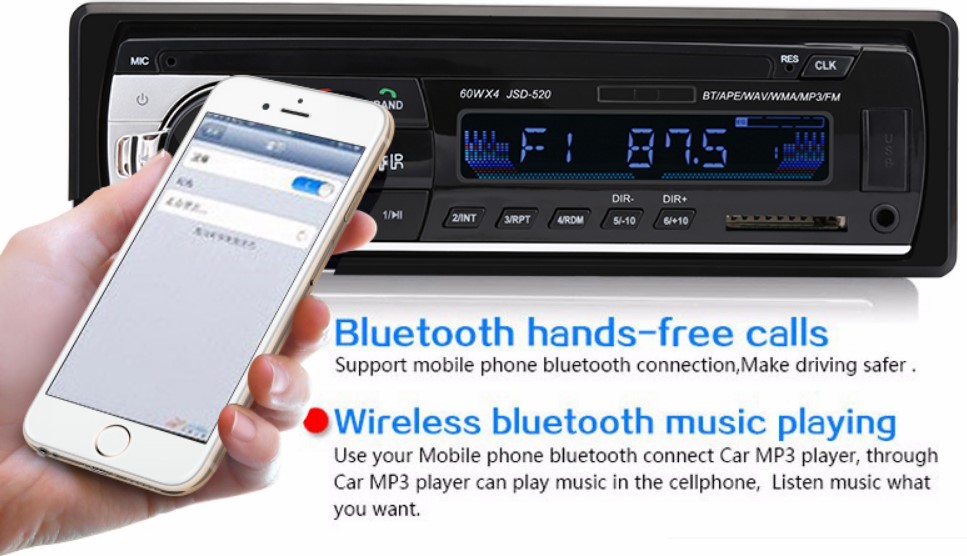 Car MP3 Player with Port 60Wx4 – Bluetooth, USB, SD, AUX, FM Radio, and Remote Control,
