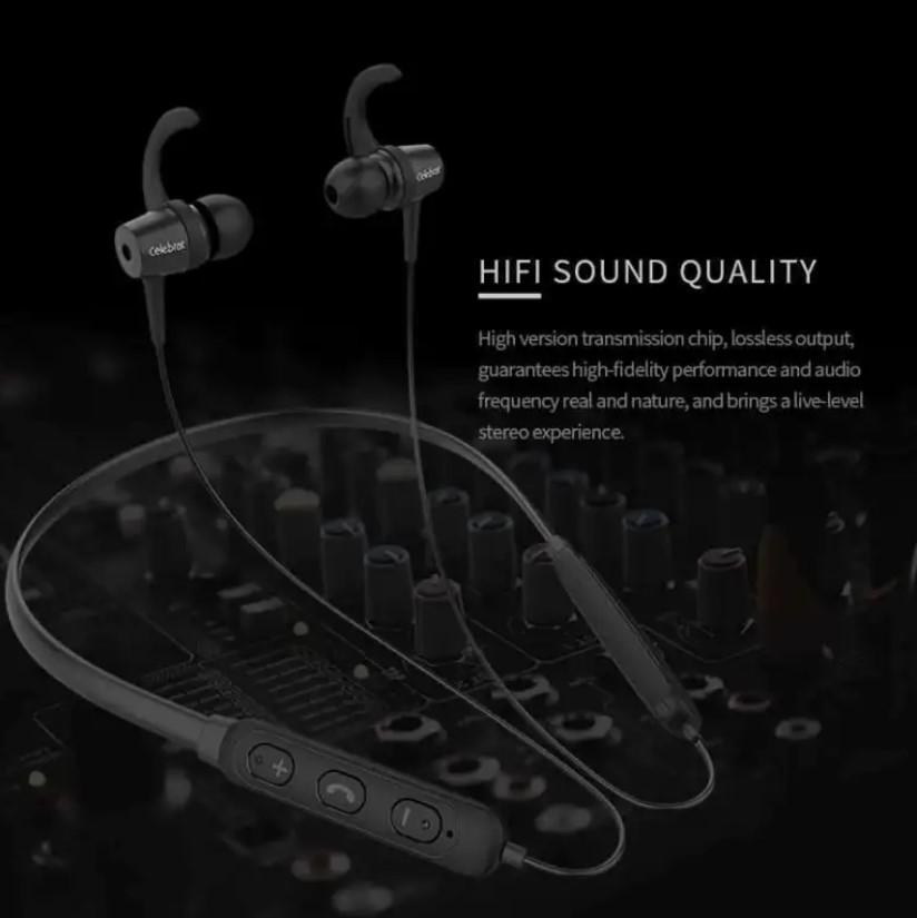 Experience superior sound quality with the Celebrat A15 wireless headset, designed for active lifestyles in Oman. These Bluetooth neckband earphones offer a comfortable fit and high-fidelity audio, making them ideal for workouts, commuting, or daily use.