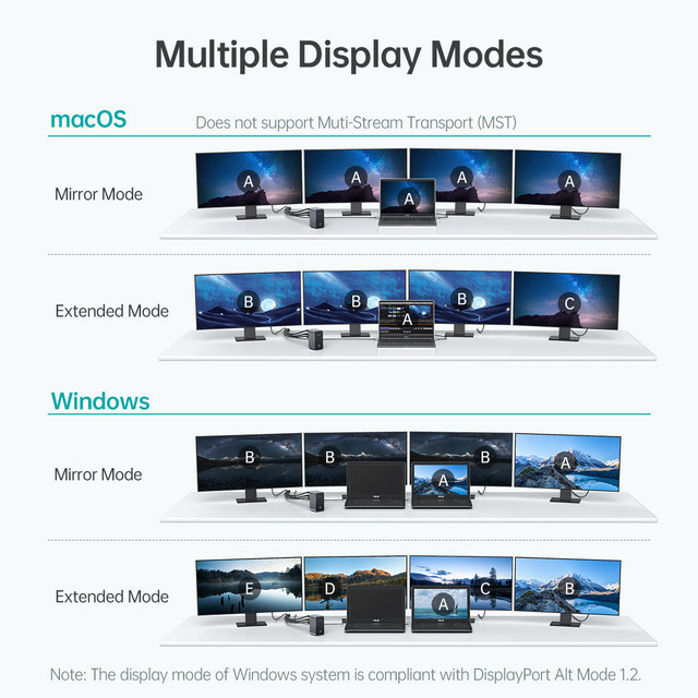 With support for quadruple display modes, you can connect up to four external monitors simultaneously, boosting productivity and multitasking capabilities. The 100W PD input allows for efficient charging of your laptop and connected devices, while the Gigabit Ethernet port ensures stable and high-speed internet connectivity.