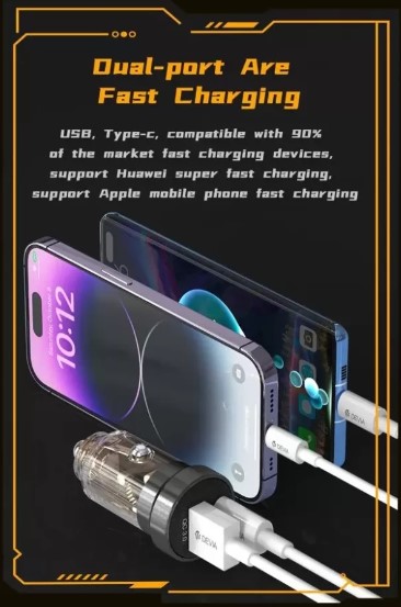 Discover fast and stylish charging in your vehicle with the Devia Punk Style Car Charger EA362, a standout punk style car charger Oman featuring both USB‑C PD 30W and USB‑A QC 3.0 fast-charging ports. Perfect for charging your iPhone, Android phone, tablet, or any USB device while on the go in Oman.