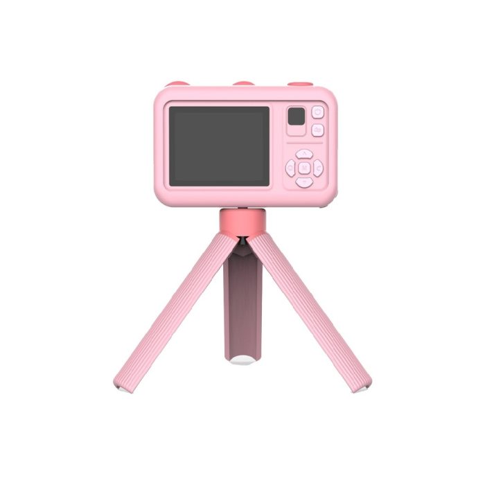 Equipped with a handheld tripod, it ensures stability for clear shots and doubles as a selfie stick for creative angles. The camera features a user-friendly interface with fun filters and frames, enhancing the photography experience for kids. Its rechargeable battery provides extended playtime, and the inclusion of a selfie mode encourages self-expression.