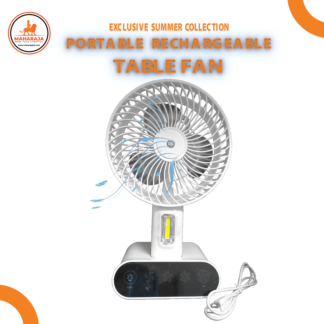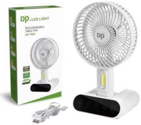DP‑7624 Portable Rechargeable Fan with LED Light – 3‑Speed USB Table Fan, 3000mAh Battery