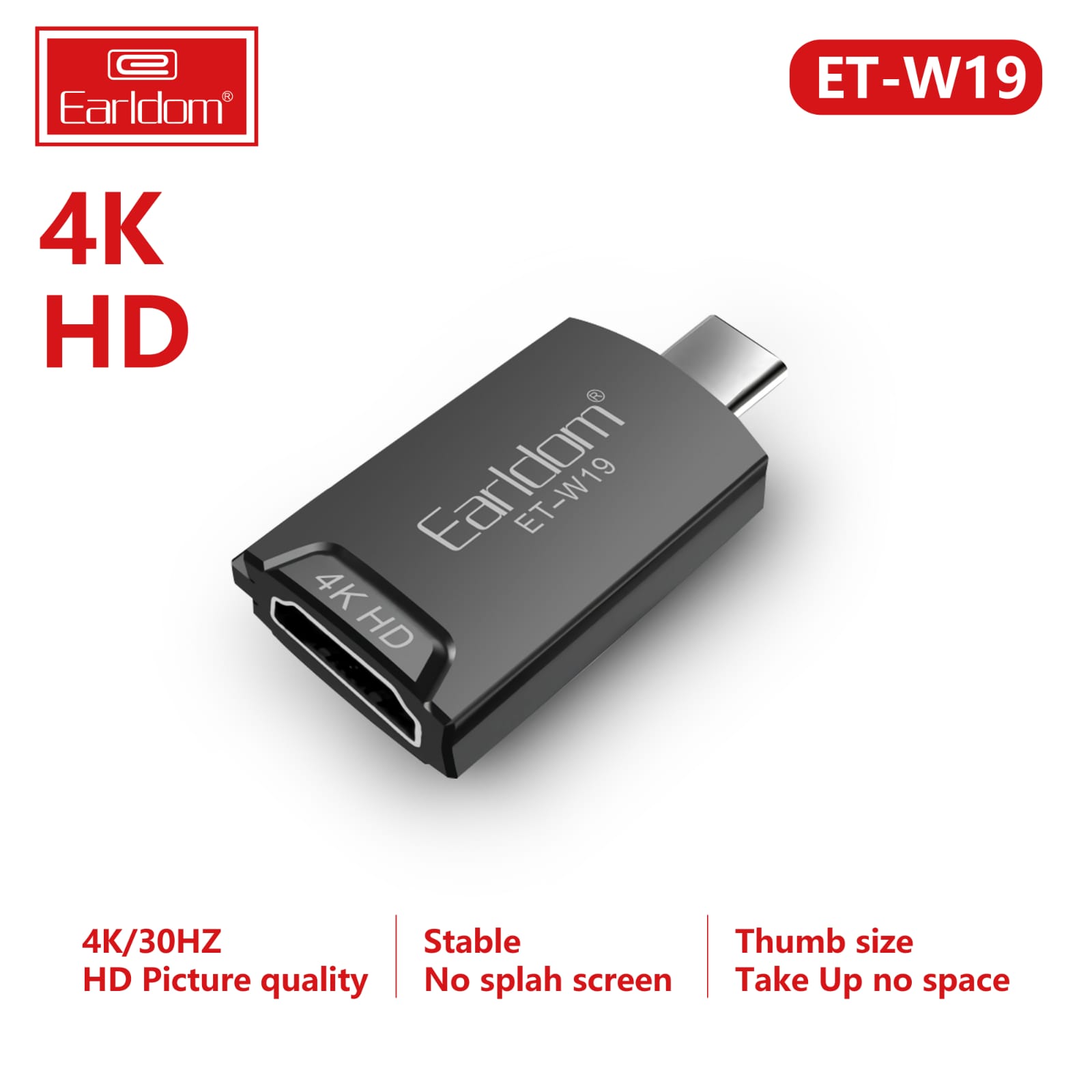 Earldom ET-W19 Type-C to HDMI 4K Adapter – Plug & Play, High-Definition Display Converter