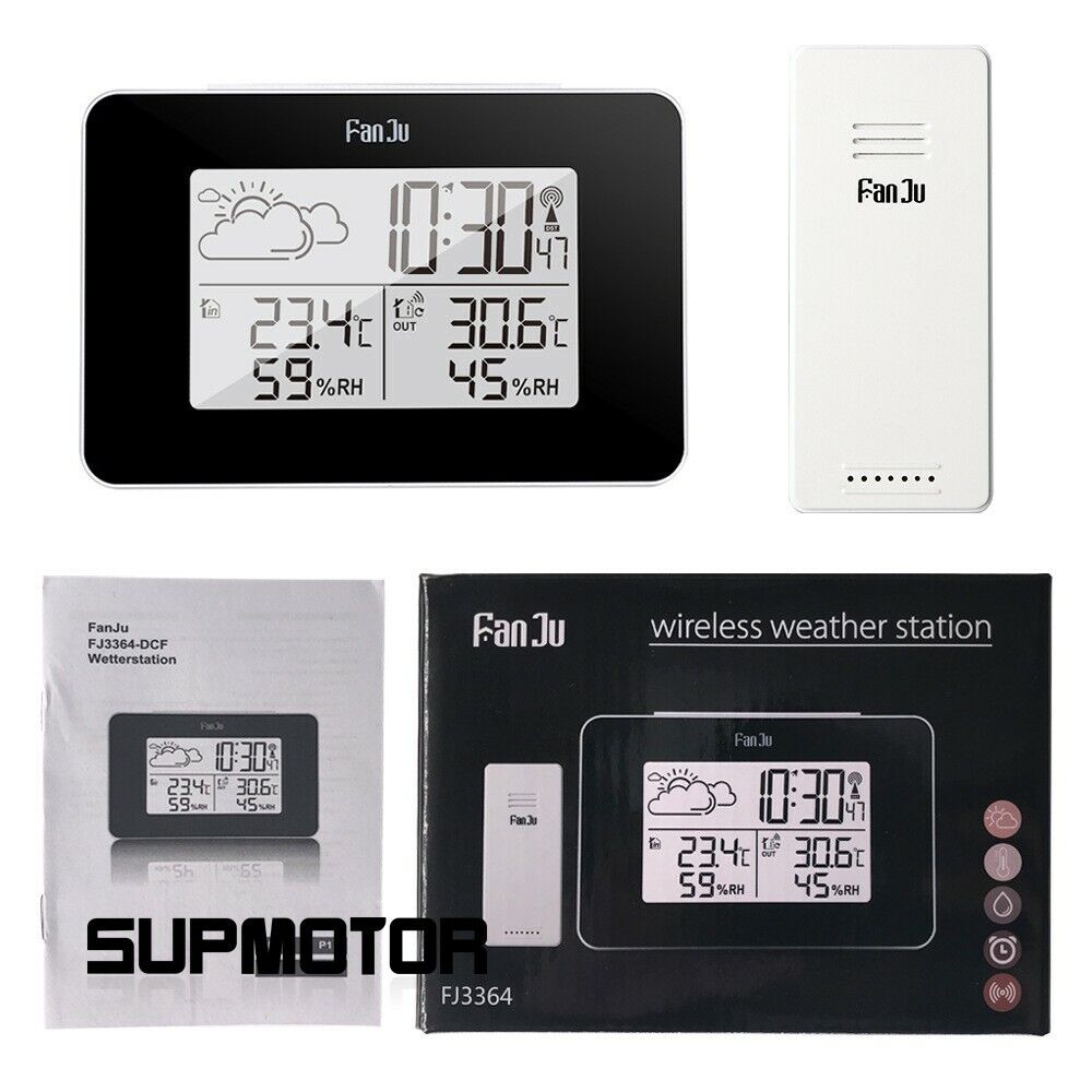 Fanju Wireless Weather Station with Indoor/Outdoor Temperature & Humidity Monitor, Alarm Clock, and LCD Display –