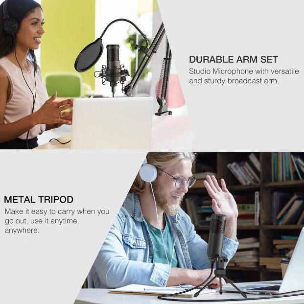 EIVOTOR Sensitive Microphone A1 – Professional USB Condenser Microphone with 3.5mm Jack, Plug & Play,