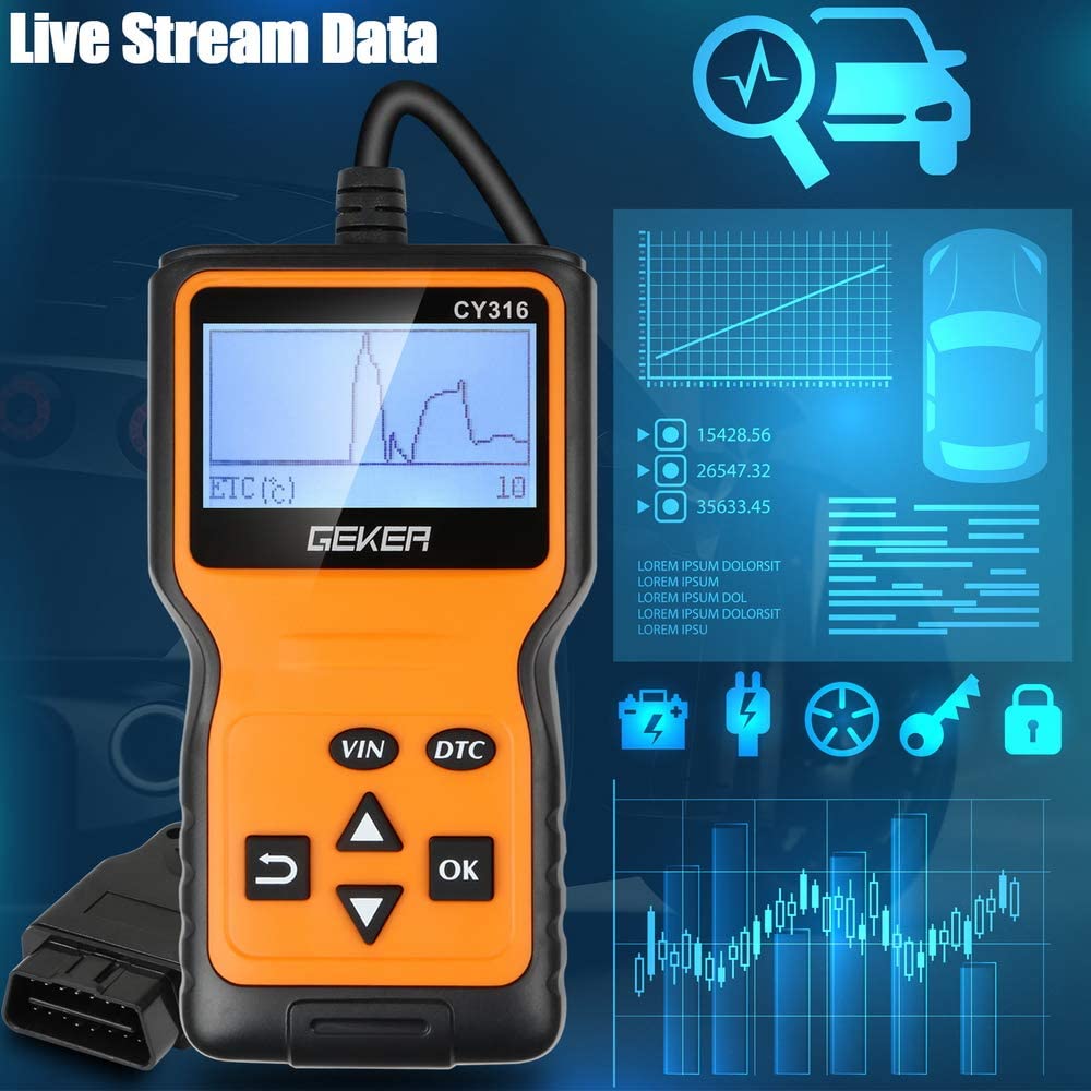 Geker CY316 OBD2 Car Diagnostic Scanner – Universal Engine Code Reader with Live Data & Freeze Frame