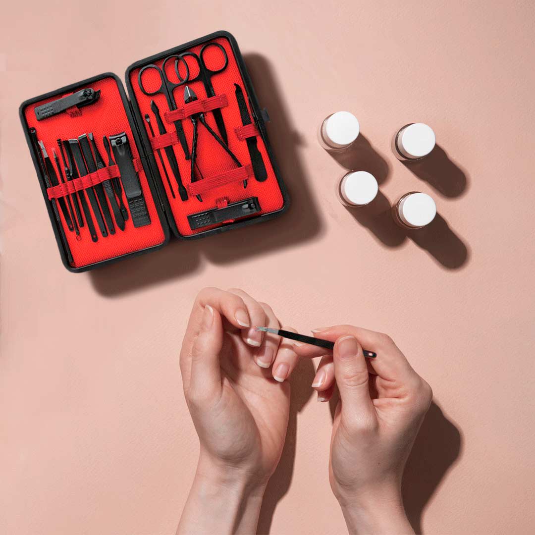 Crafted with durable stainless steel, the tools ensure long-lasting sharpness and hygiene. Whether you’re at home or traveling, this portable grooming set includes nail clippers, cuticle trimmers, tweezers, scissors, and more – everything you need in one compact case.