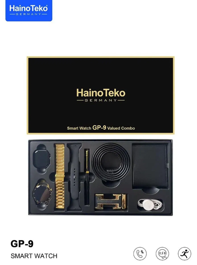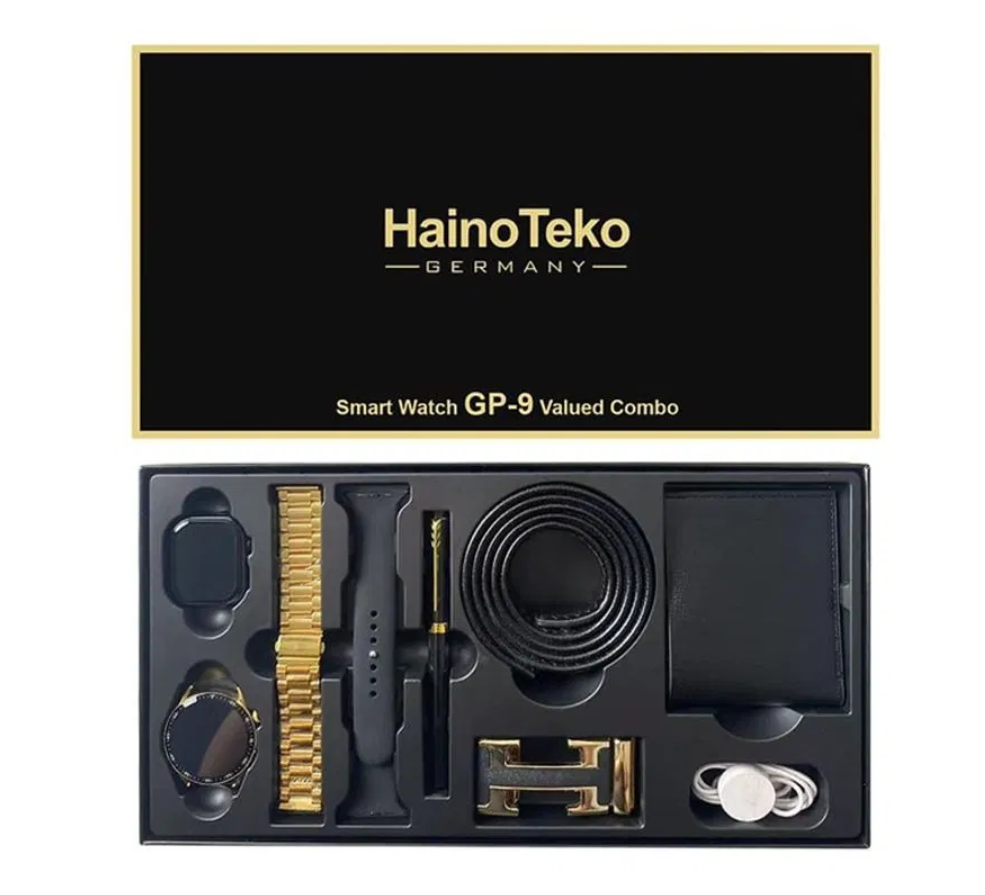 The Haino Teko GP-10 Valued Combo is a premium gift-ready set that pairs bold design with practical smart features. This GP-10 smartwatch Oman favorite ships as a value combo pack — two round dials (one sporty, one classic), dual straps and a stylish gift box so you get instant variety and style. Stay connected with Bluetooth call support for hands-free dialing, receive WhatsApp and message alerts, and control music/camera remotely. Fitness features include step counting, sleep tracking and a reliable heart rate monitor so daily health checks are effortless. Convenience is built in with wireless charging and long battery life for multi-day use. The GP-10’s large ~49mm HD display makes reading notifications and using the touchscreen simple, while water resistance and durable straps suit active lives. Whether you’re selling to gift-hunters or fitness-minded buyers, this GP-10 combo combines looks and function at an accessible price — available now at Sky Gadgets with Oman delivery and in-store pickup.