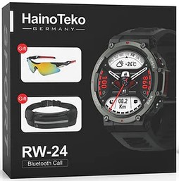 The Haino Teko RW-24 brings rugged style and smart convenience to your wrist. Built for active days, this RW-24 smartwatch features a crisp 45mm HD sports watch display with easy navigation and clear call controls — supporting Bluetooth call for hands-free conversations on the go. Designed with durability in mind, the RW-24 offers IP68 waterproof protection plus multiple sport modes and a heart rate monitor to keep fitness tracking accurate whether you’re running or training. Refill quickly with wireless charging and enjoy long standby battery life that lasts through busy days. The RW-24 often ships in a value combo box (sports sunglasses / pouch) and comes with options like stainless straps for a premium look. Receive real-time message and call alerts from WhatsApp and other apps, manage music and camera remotely, and pair the watch with Android/iOS using the supporting app. Affordable and feature-packed, the Haino Teko RW-24 Bluetooth call watch is a top choice for Oman buyers wanting a sporty, connected smartwatch without a premium price. Available now at Sky Gadgets — in-store pickup and Oman delivery options ready.