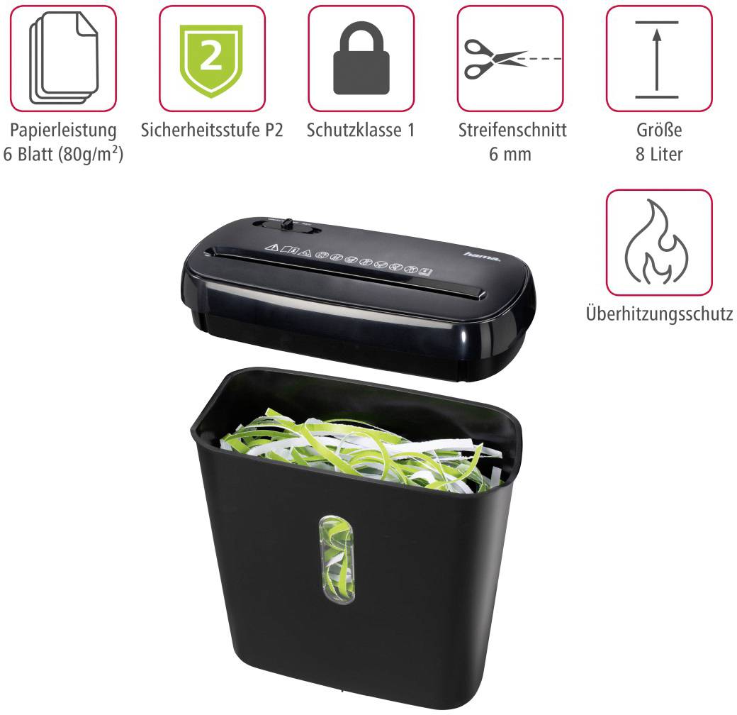 Hama Basic S6 Strip-Cut Paper Shredder – 6-Sheet Capacity, 8L Bin, Security Level P-2 – Ideal for Home & Office Use, Price in Oman