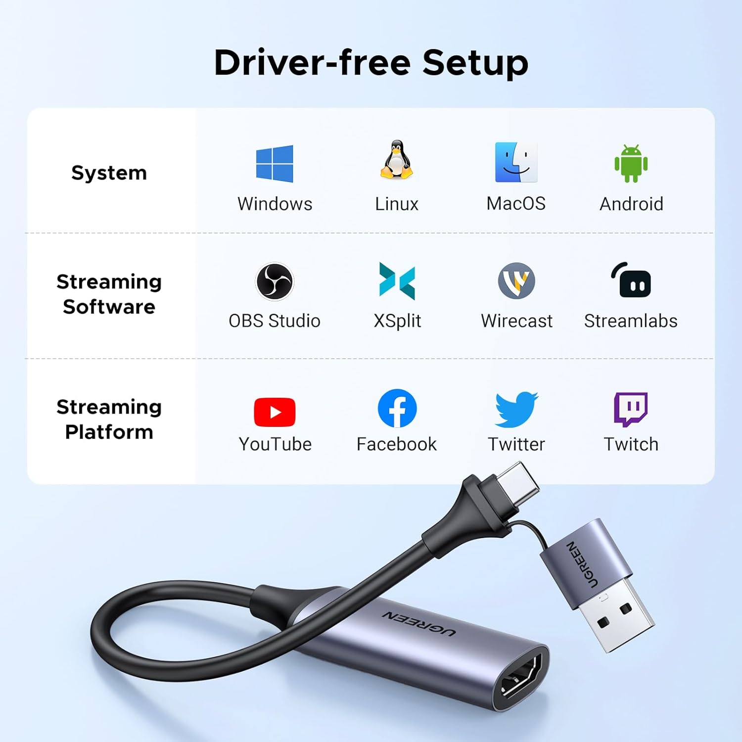 Whether you’re live streaming on YouTube, Twitch, or Facebook, or recording gameplay for editing, the CM489 video capture adapter ensures smooth transfer with no delay. It’s compatible with OBS Studio, Zoom, Teams, and other popular software, making it ideal for both personal and professional use. Lightweight and portable, this HD recording card is perfect for laptops, desktops, and even conference systems.