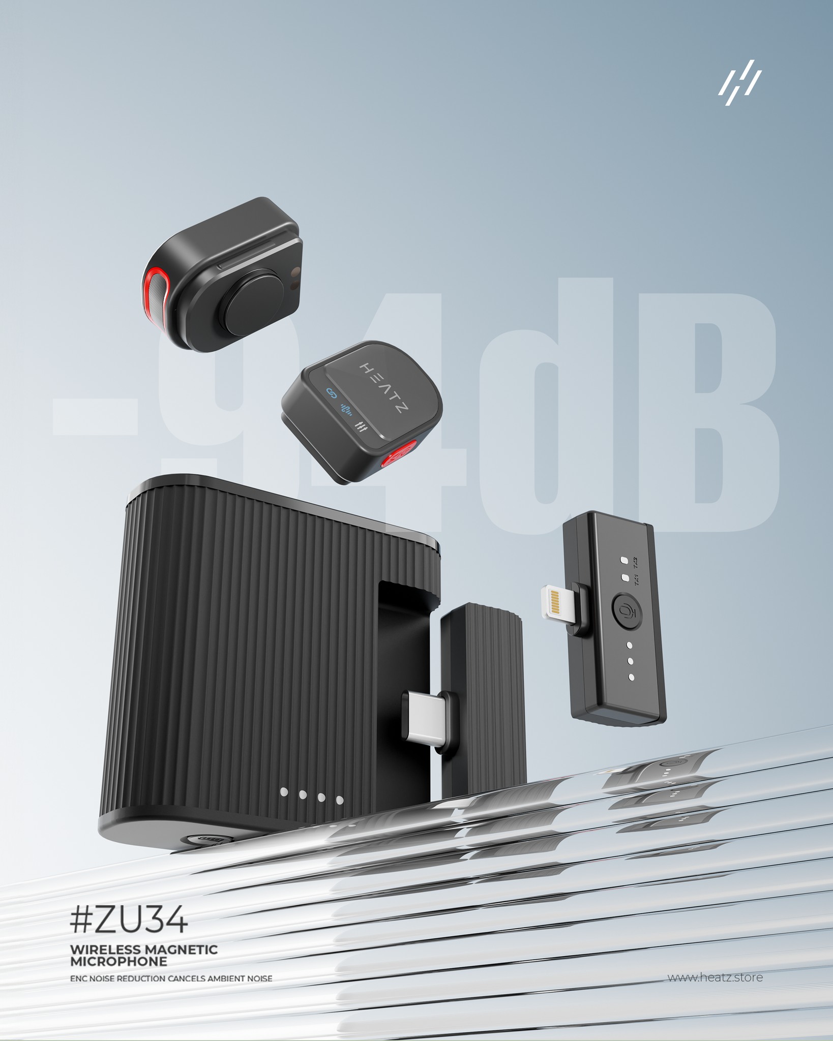 Heatz ZU34 Mag Wireless 2-in-1 Microphone – ENC, 100m Range – For iPhone & Android – Best Price In Muscat Oman