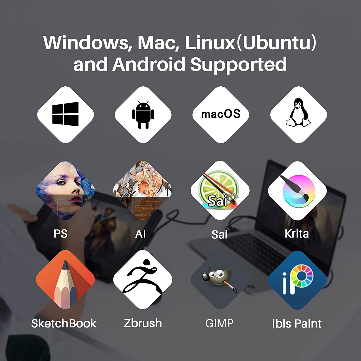 Enhance your workflow with 8 customizable express keys, enabling quick access to your favorite shortcuts. The Kamvas 13 supports both USB-C to HDMI and USB-C to USB-C connections, ensuring seamless compatibility with Windows, macOS, and Android devices.