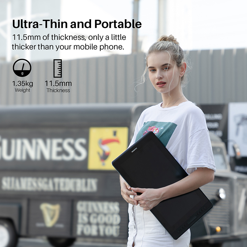 Its ultra-slim design, measuring just 11.5mm in thickness and weighing 1.35kg, makes it highly portable, perfect for on-the-go creativity. Whether you’re sketching, editing, or teaching, the HUION Kamvas Pro 16 is your reliable partner in bringing ideas to life.