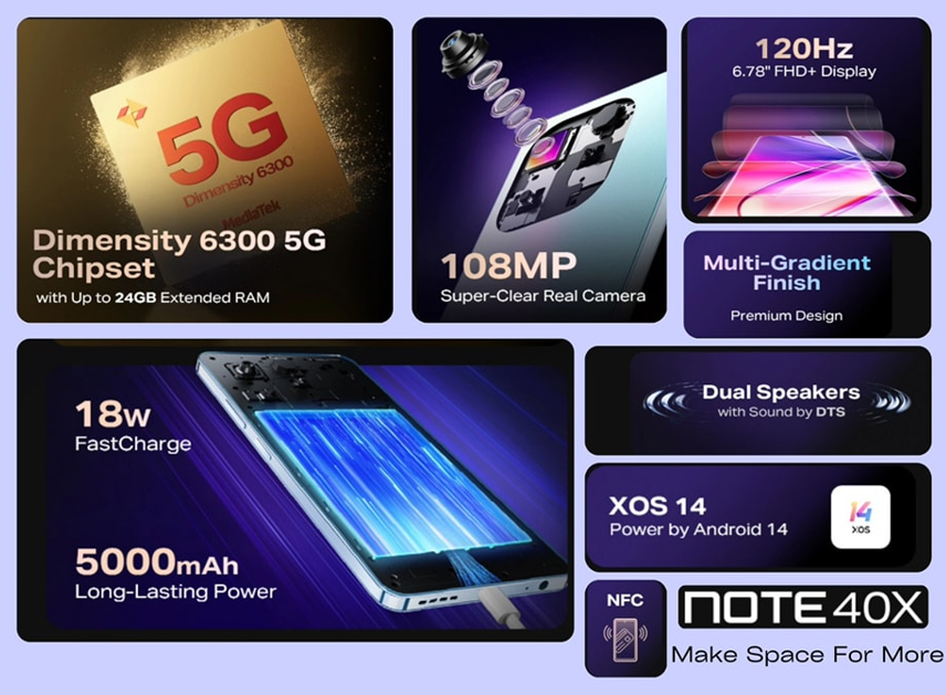 Infinix 40X 5G Smartphone | 8GB RAM + 8GB Extended | 256GB Storage | Dual SIM –