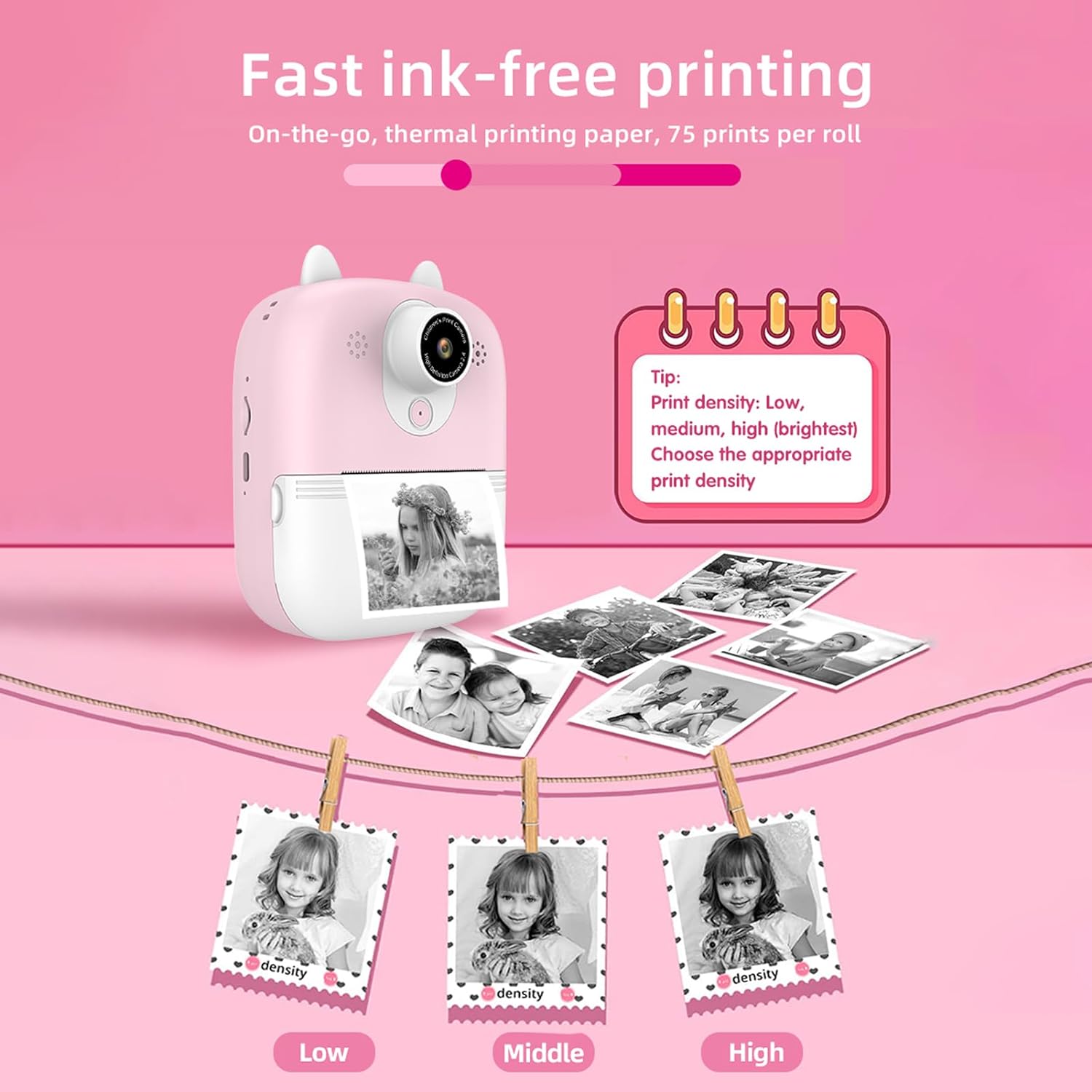 The P2 instant camera features a 2.4-inch display, enabling easy navigation and previewing of shots. With its thermal printing capability, kids can instantly print their favorite moments without the need for ink, making it both fun and cost-effective.