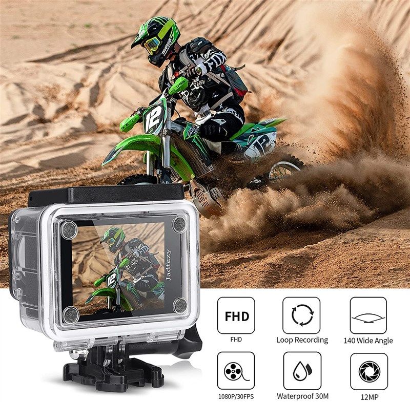 Jadfezy Waterproof Action Camera 1080p – WiFi, Dual Battery, 30m Dive-Proof + Accessories Kit