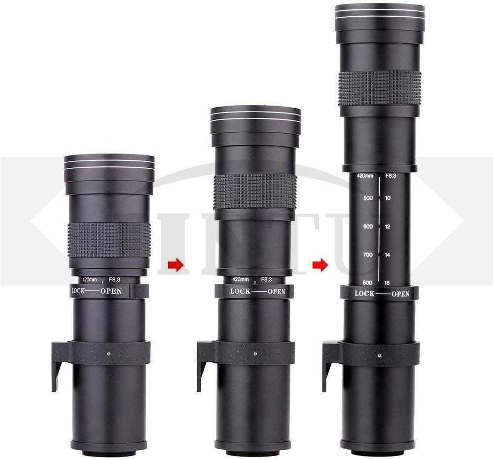 Jintu 420–800mm f/8.3 Manual Telephoto Zoom + T-Mount (Canon Compatible) Super-Zoom, Lightweight 700g, Tripod Collar