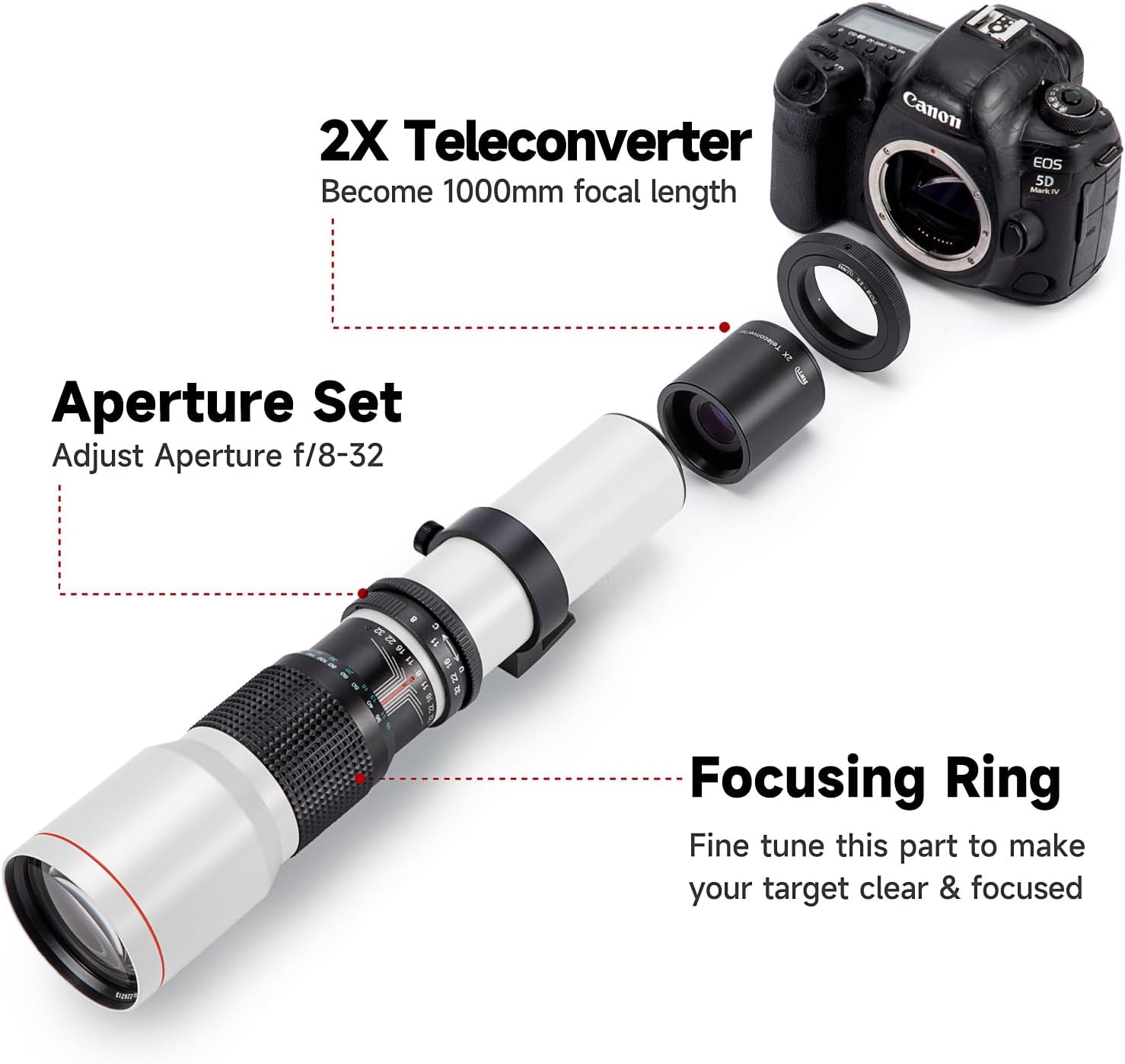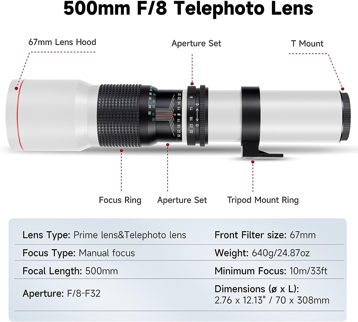 Jintu 500mm f/8–f/32 Super Telephoto Manual Focus Lens for Nikon and Canon Cameras Best Price In Muscat Oman